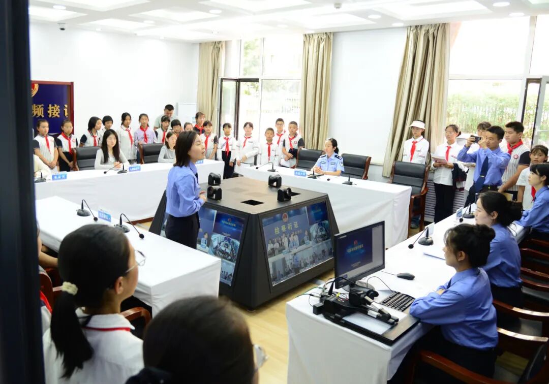 在12309检察服务大厅,检察干警详细介绍了其“案件大管家”的核心职能,学生们现场观摩了案件程序性信息查询等窗口服务,对检察机关从案件统一受理、流程监控、质量评查到信息公开的全流程运作有了一定的了解。检察听证室内,通过模拟听证场景与设备功能讲解,学生们直观了解到检察机关如何通过公开听证化解矛盾纠纷,让公平正义以看得见的方式实现。党建室里,丰富的图文展板系统呈现了检察院党建工作成果与队伍建设历程,党支部干警结合荣誉墙与支部活动记录,阐述了“党建引领检察业务”的发展理念,展现了检察干警忠诚履职的政治底色。